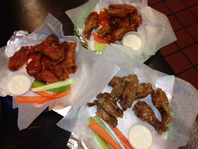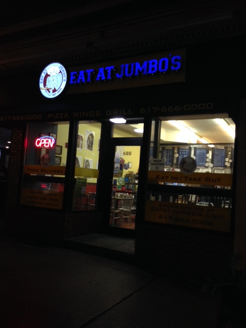 The internet regards Jumbo’s as # 3 in Boston. So, it was that title (and a house party) that drew us out to Somerville. Once we got there a few things stuck out. 1) No alcohol (.5 point deduction) 2) Friendly and helpful counter staff 3) Clean your ketchup bottles! 4) Miley was playing. Yes. 5) SO! MANY! WING! FLAVORS! I thought I misread when it said “pterodactyl” (definitely don’t have that one in NYC…it’s teriyaki meets bbq).